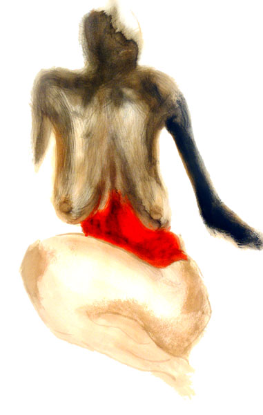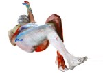 Concernant Sophie Rambert les noms d’Egon Schiele et de Francis Bacon, sans doute, comme des autorités tutélaires sous l’égide desquelles son travail continuerait de se développer, se surajouteront immédiatement à la contemplation des œuvres elles-mêmes, voire s’y substitueront jusqu’à nous les masquer. Il faudra mieux, en retournant la référence (à certains égards inévitable) aux deux grands aînés, regarder le travail de Sophie Rambert dans ses différences – plutôt que dans sa ressemblance peut-être trompeuse – avec eux, pour mieux voir ce qu’il s’y joue en propre. C’est que, s’il y va évidemment et essentiellement du corps, dans cette peinture lumineuse et torturée, c’est à la fois moins dans son devenir-animal pour étudier sa viande (Bacon, selon Deleuze) et dans son expressivité par rapport aux sources de sens comme le visage ou la société (comme chez Schiele), que pour l’étudier dans sa nudité absolue de corps : quelque chose qui bouge, qui saigne, qui jouit. S’il s’agissait pour Bacon et Schiele, en effet, d’étudier – même pour moquer ses prétentions – le corps en tant qu’il est corps d’homme, Sophie Rambert vient comme après la question de l’homme pour nous montrer la simple chair et peau dans laquelle nous habitons sans plus la voir, à force de l’habiller des significations sociales les plus diverses. Un corps nu, c’est-à-dire non seulement sans vêtement mais sans ordre. Non en tant qu’il est un corps d’homme – mais en tant qu’il est un objet, morceau prenant l’espace, et le temps.