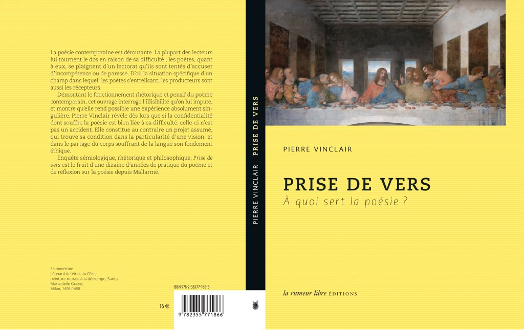 Enquête sémiologique, rhétorique et philosophique, Prise de vers est le fruit d’une dizaine d’années de pratique du poème et de réflexion sur la poésie depuis Mallarmé.