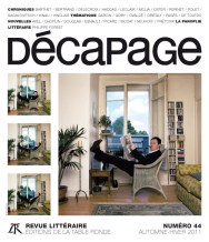 Une bonne occasion pour rappeler la sortie imminente (15 avril) du n°38 d’icelle (printemps) à la maquette rajeunie et au sommaire alléchant : outre les chroniques régulières (de G. Polet, V. Delecroix, etc.), un dossier sur les cent ans de la NRF ainsi que des textes de Blas de Roblès ou Gouzou, vous pourrez lire une excellente nouvelle du non moins excellent ami Schmutz.